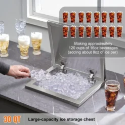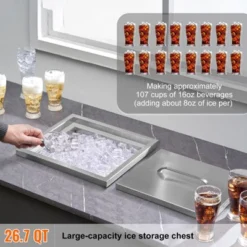 VEVOR Drop In Ice Chest, 14″L X 12″W X 18″H Stainless Steel Ice Cooler, Commercial Ice Bin With Cover, 40 Qt Outdoor Kitchen Ice Bar