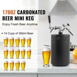 VEVOR Beer Growler Tap System, 170Oz 5L Mini Keg, 304 Stainless Steel Pressurized Beer Growler With Pressure Display, CO2 Regulator Faucet, Black