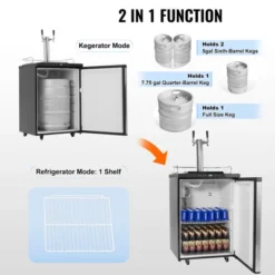 VEVOR Beer Kegerator, Dual Tap Draft Beer Dispenser, Full Size Keg Refrigerator With Shelf, CO2 Tank(No Gas), Drip Tray & Rail, Silver