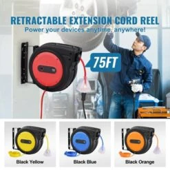 VEVOR Retractable Extension Reel, Heavy Duty 12AWG/3C SJTOW Power Cord 45 FT 12AWG, Black