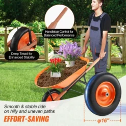 VEVOR Wheelbarrow Cart, 5 Cu. Ft. Load & 397 Lbs Capacity, 2 Wheels Garden Dump Cart, Garden Wagon With Handle &  10″  Wide Track Wheels