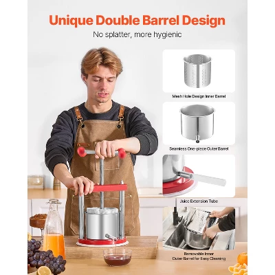 Easy to Clean: The inner and outer barrels of the fruit and wine press can be disassembled for cleaning. Made of stainless steel, you can easily rinse away food stains, leaving it clean and shiny with minimal effort. You can also place it in the dishwasher for convenient and labor-saving cleaning