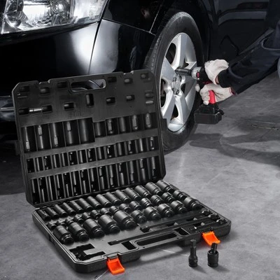 - Includes 38 sockets, extension bars, and a portable toolbox.