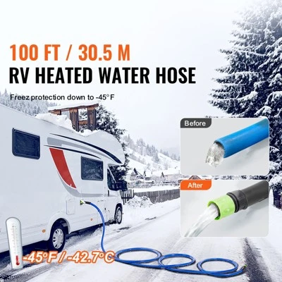Stay Flowing in Low Temps: Even when winter nights drop to -45°F/-42.7℃, our heated RV water hose ensures steady water flow, preventing freezing and providing reliable water access. Available in 15, 25, 30, 50, 75 and 100 ft lengths, it’s perfect for RVs, trailers, boats, garden hoses, plant watering, and car washing in winter.