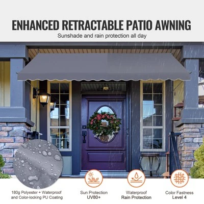 Sunshade and Waterproof: Are you still struggling with the summer heat? This large 157 x 47 in retractable patio awning features a 180g waterproof lock-color PU coating, providing UV protection rated at UV80+, making it the ideal awning for patio relaxation.