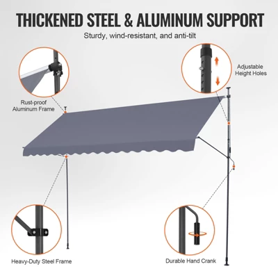Easy to Adjust: This manual retractable awning allows for height adjustments between 86-122 inches, accommodating various door and window heights, providing flexibility for your outdoor space.