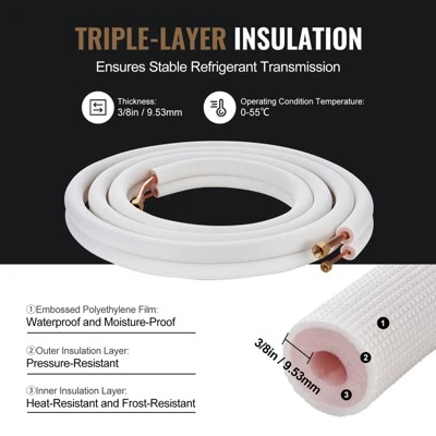 16FT Copper Tube: With a length of up to 16ft, the copper tube can easily connect indoor and outdoor units even over long distances without difficulty.