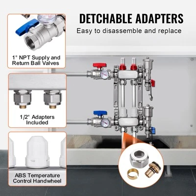 Efficient Heating Starts Here: Engineered for radiant floor heating systems, this hydronic radiant heat manifold ensures consistent and even heat distribution across your entire space. VEVOR radiant heat pex plumbing manifold is suitable for both residential and commercial applications, delivering dependable performance and optimal heating efficiency.