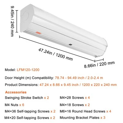 Powerful Air Curtain: Enjoy a powerful air wall with 1200 CFM, creating a tranquil indoor and outdoor condition. It efficiently eliminates dust and bad smell, providing fresh and clean air during both hot summers and cold winters.