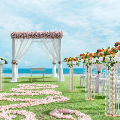 Elegant Design: This crystal flower rack features a modern style adorned with crystal beads, double rings of crystals, and 24 crystal pendants, creating a magnificent and elegant look. It ensures even weight distribution, enhancing overall stability, with a maximum load capacity of 33 lbs, making it suitable for holding various decorations without the risk of falling.
