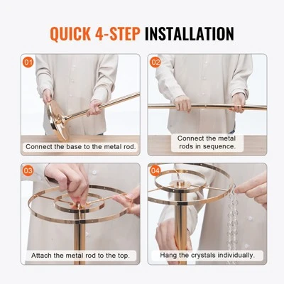 Easy Assembly: Assembly of this crystal flower rack is simple and tool-free, requiring just four steps: Step 1 – Connect the base with the metal rod, Step 2 – Assemble the metal rods in sequence, Step 3 – Connect the metal rod with the top, Step 4 – Attach the crystals individually. Assembly can be completed in just a few minutes.