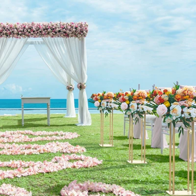 High-Quality Materials: This wedding flower stand is crafted from high-quality iron material that is resistant to deformation and built to last. It boasts a surface finish with French gold electroplating, using a mid-to-high-level electroplating process to achieve high brightness, vibrant colors, and easy cleaning. The columns are securely fastened to the frame using screws to prevent warping, ensuring increased stability after installation.
