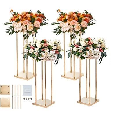 Easy Assembly: Assembly of this wedding flower stand is a breeze and requires no tools. Simply follow these 4 steps: Step 1: Start by installing the two square frames. Step 2: Assemble the two smaller metal rods one by one. Step 3: Connect the bottom square frame to the columns. Step 4: Connect the top square frame to the columns. You can complete the assembly in just a few minutes.
