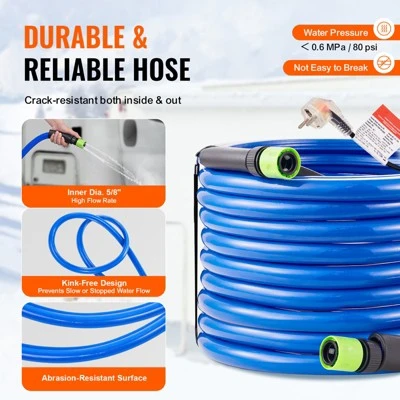 Smooth Water Flow: Designed with a kink-free structure to prevent slow or blocked water flow. The 5/8″ I.D. supports high water flow. Suitable for water pressure below 4 MPa/600 PSI, with a durable PVC outer layer that resists road gravel and ice.