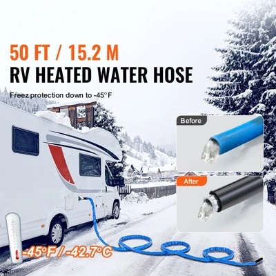 Stay Flowing in Low Temps: Even when winter nights drop to -45°F/-42.7℃, our heated RV water hose ensures steady water flow, preventing freezing and providing reliable water access. Available in 15, 25, 30, 50, and 100 ft lengths, it’s perfect for RVs, trailers, boats, garden hoses, plant watering, and car washing in winter.