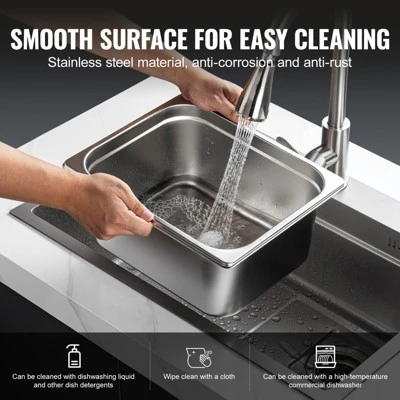 Easy to Clean: The smooth surface of the catering storage food pan makes it easy to clean. You can clean it with detergent and a cloth, or use a dishwasher for convenience.
