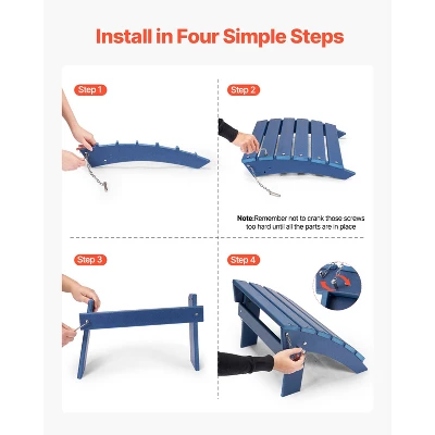 Easy Assembly: Just 4 steps—open the chain bolts, insert screws, tighten, and secure the Adirondack foot stool. Quick to assemble, saving you time and effort. Clean with soap and water, and use a soft brush or sandpaper sponge to buff out scratches.
