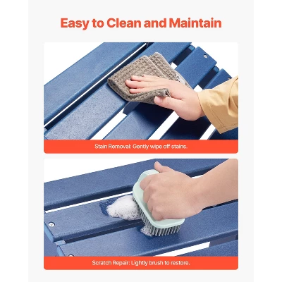 Easy Assembly: Just 4 steps—open the chain bolts, insert screws, tighten, and secure the Adirondack foot stool. Quick to assemble, saving you time and effort. Clean with soap and water, and use a soft brush or sandpaper sponge to buff out scratches.