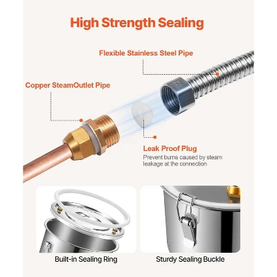 Secondary Distillation System: A thumper keg is added in front of the cooling pot, delivering purer and richer flavors. The thumper keg is used for secondary distillation to produce whiskey or other spirits with higher purity. You can also add various flavoring ingredients to enhance the complexity of the finished wine.