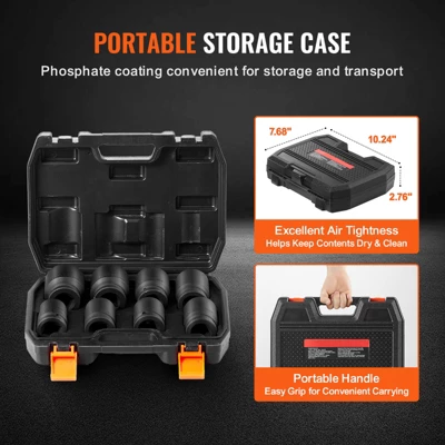 Portable Storage Case: All impact sockets are neatly organized in a sturdy storage case for convenient access and transport. The case is airtight to keep your tools dry and clean, and it includes a handle for easy carrying.