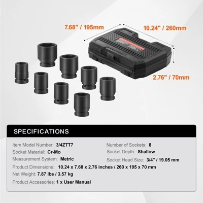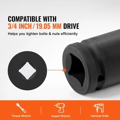 3/4 Inch Drive Axle Nut Socket Set: This metric 8-piece axle nut impact socket set includes sizes 24mm, 26mm, 27mm, 29mm, 30mm, 32mm, 36mm, and 38mm. It is perfect for efficiently tightening axle nuts and bolts.