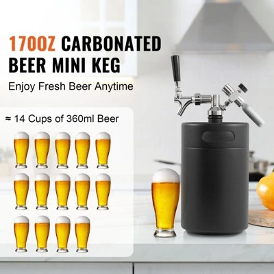 Portable Size: A 170oz carbonated beer mini keg, with dimensions of 6.9 x 8.3 x 16.6 inches, comes with a built-in portable handle. It is suitable for home gatherings or outdoor camping.