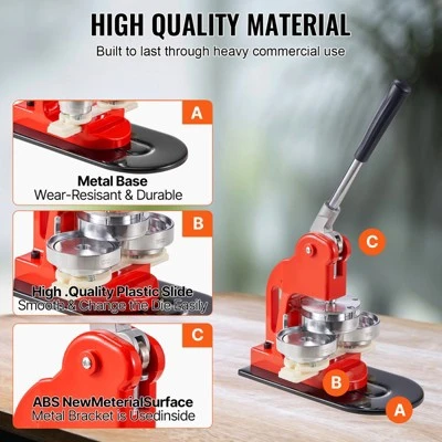 Crafted With High-quality Materials: The pin maker machine is made of high-quality iron, and the surface is ABS new material coated. It’s sturdy and resistant to breaks. The solid bottom plate and upgrade rail can ensure long service life and elevate badge-making’s success rate.