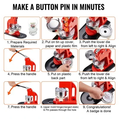 Special Gift: The pin maker machine kit is a perfect gift for your children/ wife/ mother/ friends. You can use this badge pin press machine to make various beautiful badges. Enjoy permanently recording tourist attractions, food, pets, holidays, anniversaries, etc. It is also excellent for pin buttons, rope ties, keychains, bottle openers, etc.