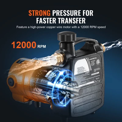 Revolutionary Water Transfer: Are you ready for quality water control? Experience unbeatable efficiency with our 1/2 HP water transfer pump, delivering up to 1600 gallons per hour and a 120 ft pumping height. Elevate your water transfer game!