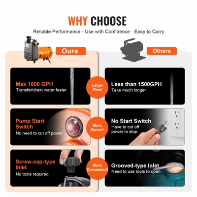 Created Just for You: The water transfer utility pump is designed with an integrated power switch, allowing you to start or stop the pump with just one click. The water inlet can be disassembled and assembled without any tools. Its 10 ft power cord makes remote operation a breeze.