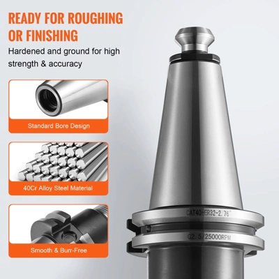 High-Quality Materials: Our CAT40 collet holder and ER spring collet chucks are built from sturdy 40Cr and 45# alloy steel respectively, hardened and precision-ground, making them suitable for high-speed milling of precision parts, high-strength grinding, and various machining scenarios. It also ensures the durability of the collet chucks and effectively addresses deformation issues during machining.