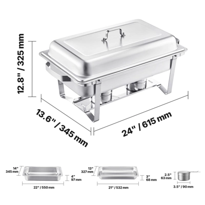 Elegant Silver Finish: The modern silver color of this chafing dish warmer adds a sophisticated touch to any event. Whether it’s a buffet, party, or wedding, this sleek design enhances your table setting and elevates the atmosphere