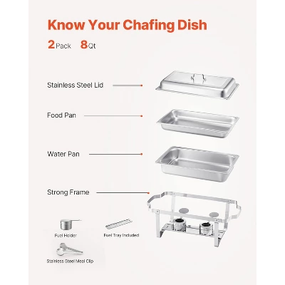 Ample 8QT Capacity: With a large capacity, this catering chafer can hold multiple servings of your favorite dishes. The included multifunctional meal clip makes it easy to serve pasta, steak, soup, chicken, and more