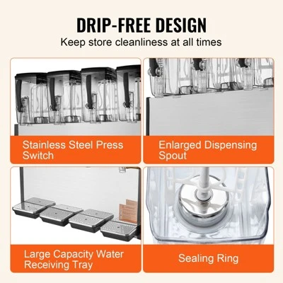 Large Capacity: This commercial beverage dispenser has a tank capacity of 12 L, accommodating a large volume of beverages. It features an upgraded wide diameter dispensing spout, allowing smooth and easy dispensing of drinks with small particles such as coconut juice and fruit pulp. Equipped with a rubber sealing ring to prevent beverage leakage.