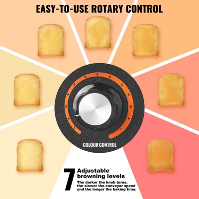 Dual Knob Simplicity: One knob controls your toastiness level with 7 settings – the darker the setting, the slower the conveyor speed for a deeper toast. The other knob offers three modes, letting you tailor your toast to perfection. The upper and lower heating elements work separately to meet different baking needs. Simple knob controls mean you’ll be a toasting pro in no time.