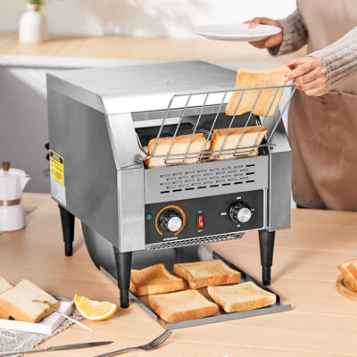 High-Quality Commercial Conveyor Toaster: Our conveyor toaster is meticulously crafted from stainless steel, from the exterior to the conveyor chain mesh. The knob operation is simple and user-friendly. The removable crumb tray makes cleaning a breeze. This low-noise toaster is suitable for restaurants, bakeries, offices, hotels, schools, buffets, and large family breakfasts.