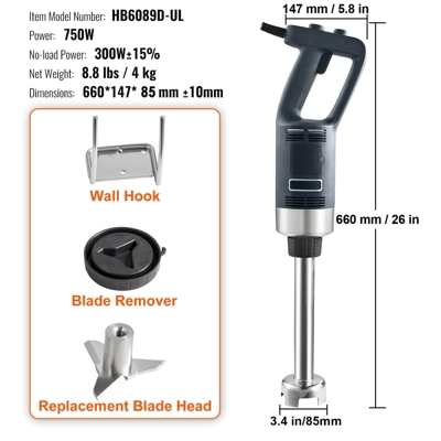 Easy to Disassemble and Clean: The detachable design allows easy rotation to assemble or disassemble the handle, blending foot, and other accessories. The industrial immersion blender blade can be placed in a dishwasher for hassle-free cleaning.