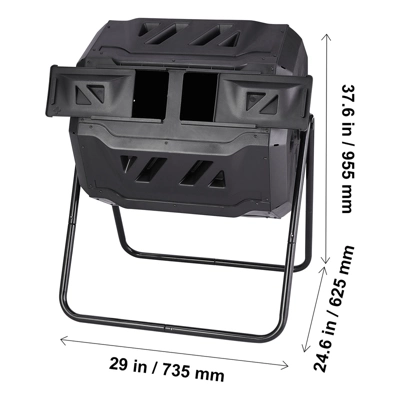 Dual Chamber, High Capacity: Our compost bin features a dual chamber with a generous capacity of 43 gallons. Perfect for large families and avid gardeners, you can simultaneously compost in one chamber while adding new organic material to the other, reducing overall composting time.