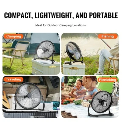 Wide Applications: This portable floor-standing rechargeable fan is compact, lightweight, and easy to carry, making it ideal for outdoor activities like camping, fishing, travel, picnics, BBQs, car trips, and outdoor parties. It’s also suitable for indoor use, such as studying, working, reading, and sports activities.