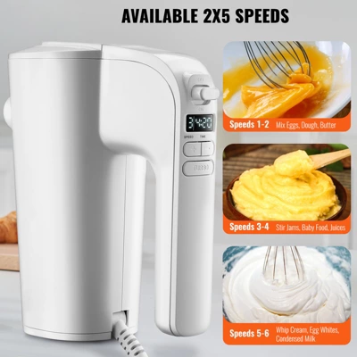 5-Speed Control & Turbo Boost: This digital hand mixer features 5 precise speed controls, allowing you to select the right speed for different ingredients and cooking needs via the digital display. Digital controls with LCD display and touch buttons for easier operation. The turbo function accelerates each speed simultaneously, and you can adjust 5 speeds at the push of a button to meet different mixing needs.