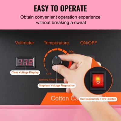 Easy-Operating Process: Using this machine couldn’t be easier. Turn on the power, adjust the temperature, warm up for 2-3 minutes, and pour sugar into the spinning head, and then you just need to use the sticks to collect the cotton candies from the head.