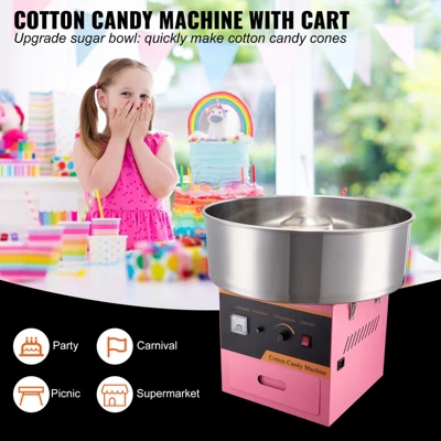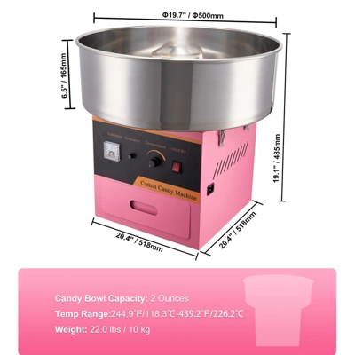 Work with Any Candy You Like: This cotton machine allows you to use the traditional flossing sugars, milk sugars, fruit cubes, or any of your favorite hard candies to make delicious cotton candies. With a compact size, it is suitable for countertop use, and it is perfect for carnivals, festivals, birthday parties, and sports events.