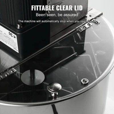 See Your Honey Move: Get ready to watch your honey flow with our clear lid extractor! The lid allows you to easily monitor the progress of your extraction. We’ve designed this electric honey spinner with safety in mind. If the lid is opened during extraction, the shaker will automatically stop, giving you peace of mind and a pleasant honey harvesting experience.