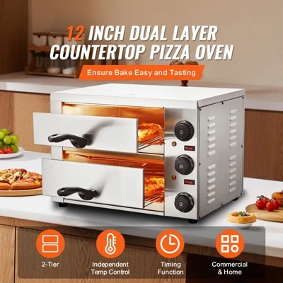 High Quality Electric Pizza Oven: Crafted with food-grade stainless steel, VEVOR electric pizza oven assures you a secure and hassle-free baking experience. Coupled with the provided baking grill and crumb tray, this countertop pizza oven is able to bake crispy pizzas up to 12 inches, perfect for your kitchen, dorm, camping, and parties.