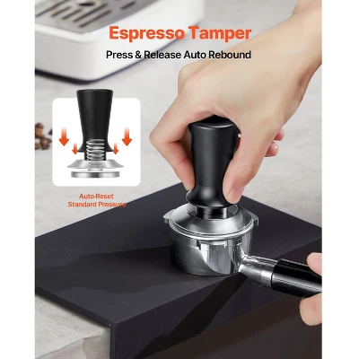 53 mm High-Efficiency Tamper: This espresso tamper features a pressing-type slow rebound design and an ergonomic handle for a comfortable grip, allowing easy tamping of coffee grounds and ensuring an even and balanced tamp.