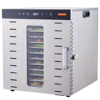 10-Layer Stainless Steel Trays: This food dehydrator has ten stainless steel trays that are food-grade 304 and measure 14.8 x 11.2 inches / 377 x 285 mm each. Each layer can hold up to 1.7 pounds of food, so you can dry different types of fruits and vegetables all at once.