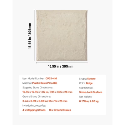 Secure & Stable: Each pathway stepping stone includes four 3.74-inch (95 mm) ground stakes and a reinforced ribbed base for enhanced stability. They stay firmly in place even in heavy rain or with frequent foot traffic—ideal for homes with kids and pets.