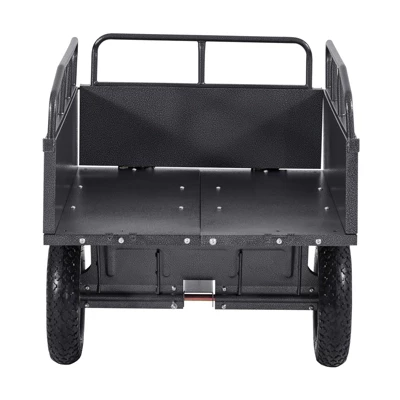 Efficient Hauling Assistant: With a 500lbs weight capacity and 10 cubic feet of space, this atv trailer handles garden waste and heavy materials like soil, branches, and fertilizer with ease. The three-sided guardrail design enhances storage space, reducing multiple trips and improving work efficiency.