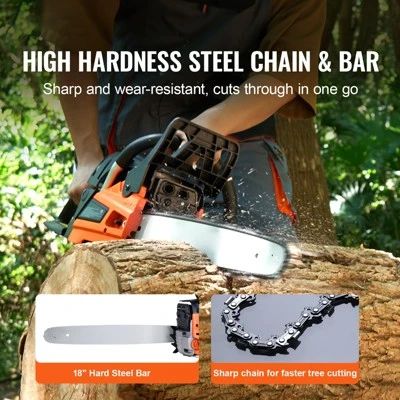 High-Strength Steel: Cut trees quickly with our gas chainsaw, thanks to its high-strength steel chain and bar. The 18″ bar reduces sawdust splatter, keeping your work area cleaner and safer. This chainsaw is designed to boost your efficiency and comfort on the job.