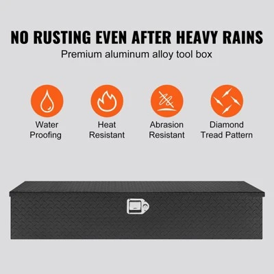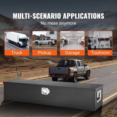 Last A Lifetime: VEVOR truck tool box is constructed from lightweight yet durable aluminum alloy, featuring a diamond tread pattern and double-sided power coating process. This design helps to prevent rust, corrosion, and abrasion, ensuring long-lasting use for several years. Additionally, the tool box is equipped with upgraded corners to secure the packaging and prevent any damage or deformation during transportation.